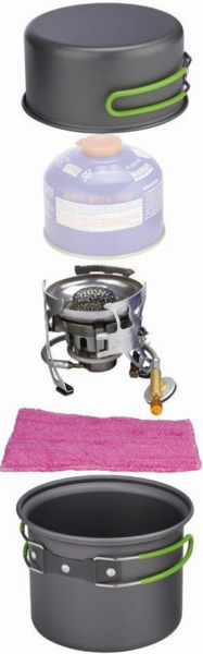 Мощность горелки - 1400 Вт. Потребление топлива - 106 г в час. Один литр воды закипает за 5 минут 50 секунд. Закрытое горение улучшает тепловую эффективность на 35 процентов. Дизайн внутренней сетки для камеры сгорания способствует преобразованию пламени с целью равномерности нагрева. Конструкция верхних пазов горелки усиливает трение, улучшая сопротивление скольжению. Конструкция нескользящей подставки адаптирована к различным ландшафтам той местности, где вы отдыхаете. К тому же можно свободно регулировать кронштейн в соответствии с различным наклоном. Эти практичные котелки и горелка в комплекте облегчат процесс приготовления пищи в полевых условиях. Отличное дело для туристов, любителей активного отдыха среди дикой природы. В наборе предусмотрена мягкая салфетка.