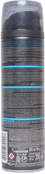Aqua, Palmitic Acid, Triethanolamine, Glycerin, Isopentane, Glyceryl Oleate, Isobutane, Stearic Acid, Parfum, Hydroxyethylcellulose, Menthol, PEG-90M, Myristic Acid, Lauric Acid, Dimethicone, PEG-23M, Dimethiconol, Silica, Tocopheryl Acetate, CI 42051, Benzyl Salicylate, Hydroxyisohexyl 3-Cyclohexone Carboxaldehyde, Linalool, Limonene