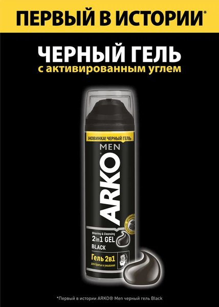 Первый в истории ARKO Men черный гель BLACK обладает свойствами 2 в 1 и подходит как для бритья, так и для умывания. Благодаря своей специальной формуле с активированным углем, гель ARKO Men BLACK обеспечивает комфортное бритье, очищение и необходимый уход за мужской кожей.