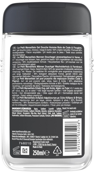 Le Petit Marseillais Гель-шампунь для мужчин «Можжевельник и экстракт папоротника» 4 в 1 для тела, волос, лица и бороды