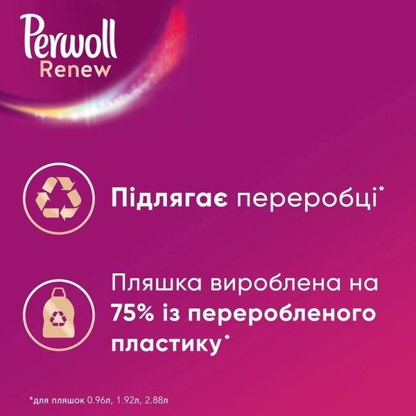 Одежда выглядит как новая? Да! Ведь Perwoll Renew Восстановление и Аромат - это безупречный уход за любимой одеждой! Усовершенствованная формула стирального средства обеспечивает чистоту, восстанавливает цвета и волокна, даря им непревзойденный вид и цветочный аромат! Гель для стирки Perwoll рекомендован для всех видов тканей, включая деликатные. Для изделий из шерсти и шелка используйте Perwoll для шерсти и шелка. Средство можно использовать как в холодной, так и в горячей воде, как для машинной, так и для ручной стирки.