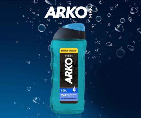 Arko Men Cool 2 в 1 для мужчин: гель для душа + шампунь морская свежесть. С бодрящим освежающим эффектом на целый день.