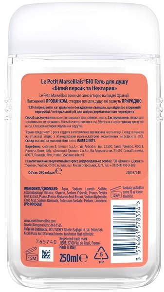 - Гель для душа Le Petit Marseillais Био Белый персик и нектарин 250мл