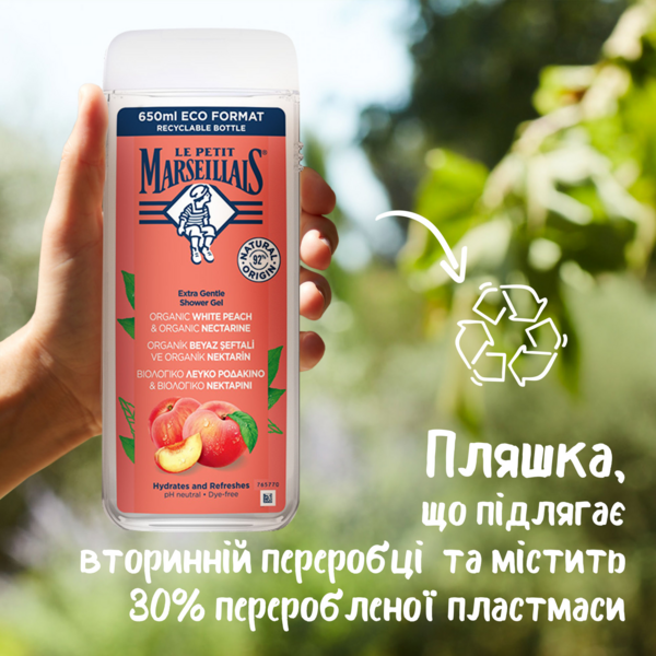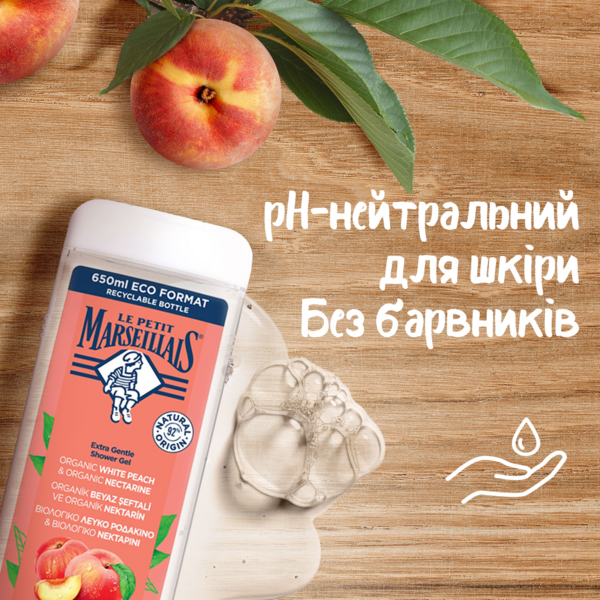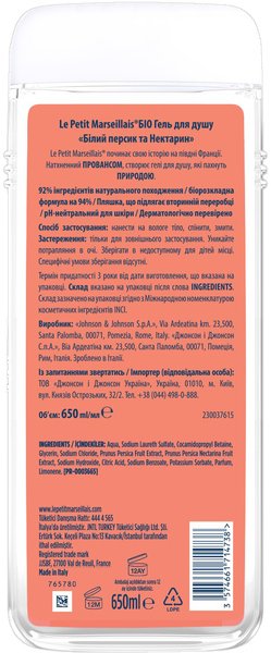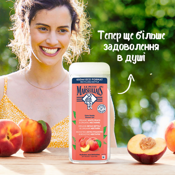 Именно под щедрым солнцем юга Франции органический белый персик и нектарин собирают в полной зрелости. Их сочная мякоть вдохновила наш гель для душа на фруктовый аромат. Le Petit Marseillais БИО Гель для душа «Белый персик и Нектарин» увлажняет и освежает, дарит мягкость вашей коже благодаря нейтральному рН. Его насыщенная формула с приятным ароматом придает ощущение легкости и комфорта сразу после использования.
