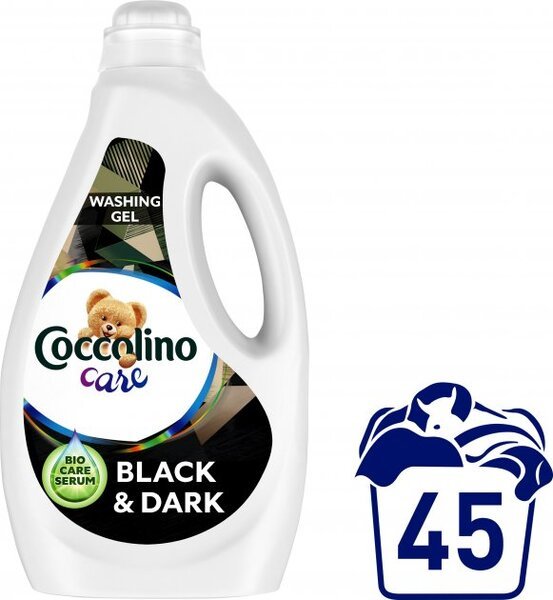 Coccolino care washing gel black & dark – жидкое моющее средство, специально разработанное для ухода за черной и темной одеждой. Формула care serum с уникальной сывороткой глубоко проникает в волокна тканей, обеспечивает полноценный уход, защиту текстиля от преждевременного износа и быстрого выцветания. Высококонцентрированный гель обеспечивает идеальное отпирание, хорошо выполаскивается, не оставляя на белье следов и разводов. Средство рассчитано на 45 стирок и подходит для ручной и автоматической стирки. Гель не содержит фосфатов.