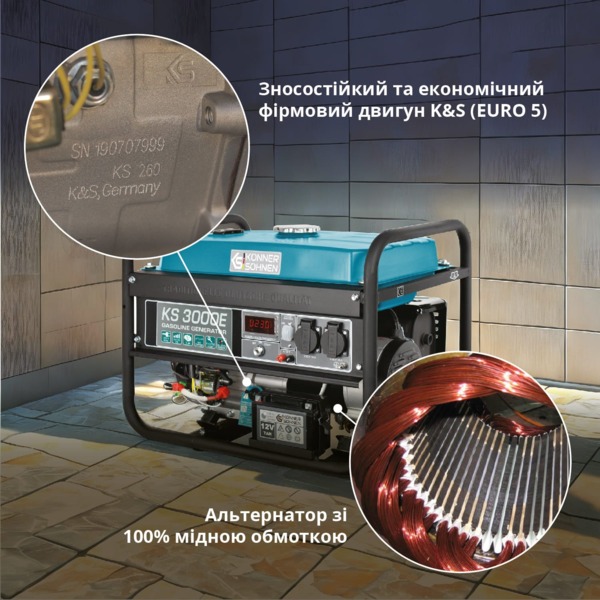 Генератор бензиновый Konner&Sohnen KS 3000, 230В, 3кВт (KS3000)