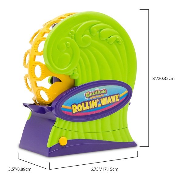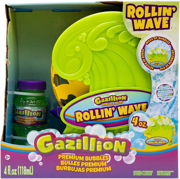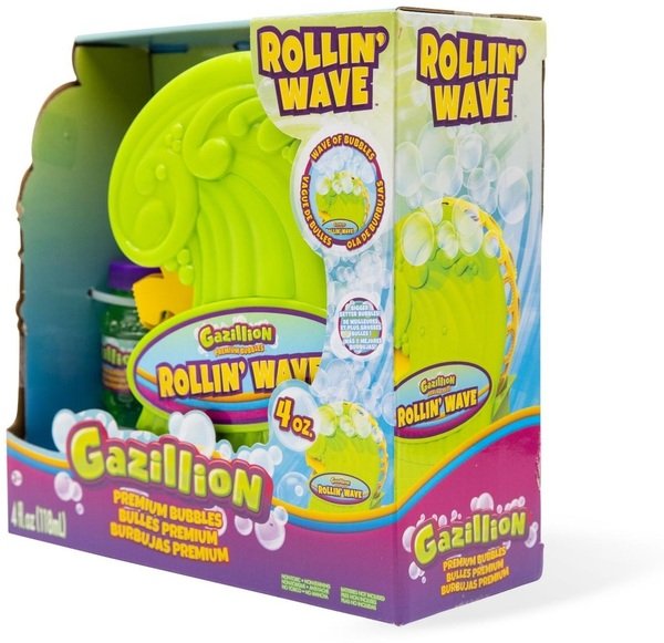 Мгновенно создавайте волну пузырей с Gazillion Bubbles Rollin’ Wave! Одним нажатием кнопки этот инновационный дизайн выпускает бесконечный поток пузырей! Просто налейте раствор Gazillion Bubbles в нижний лоток, нажмите кнопку «Вкл» и наблюдайте, как начинается веселье с пузырьками. Каждая волна Rollin’ включает одну 118мл бутылку мыльного раствора.