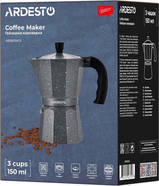 Гейзерная кофеварка ARDESTO Gemini Molise, 3 чашки, серая (AR0803AGS)