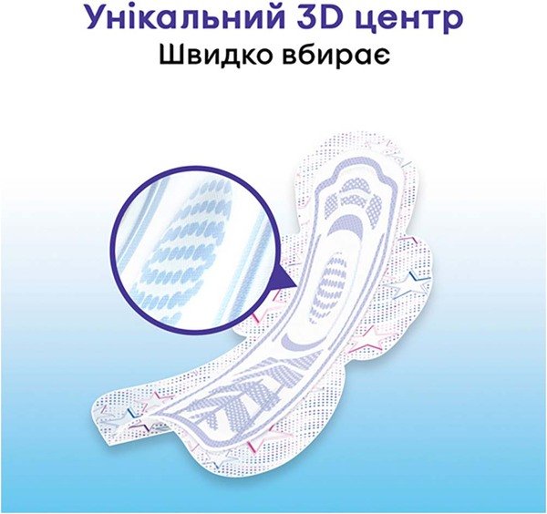 - Благодаря инновационной системе Fast Absorb быстро впитывает влагу, равномерно распределяя ее по всей прокладке, что способствует ощущению сухости и комфорта