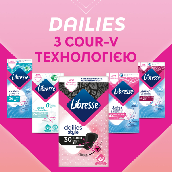 - Гигиенические прокладки Libresse Daily Fresh Normal Black 30 шт.