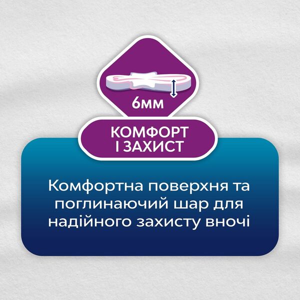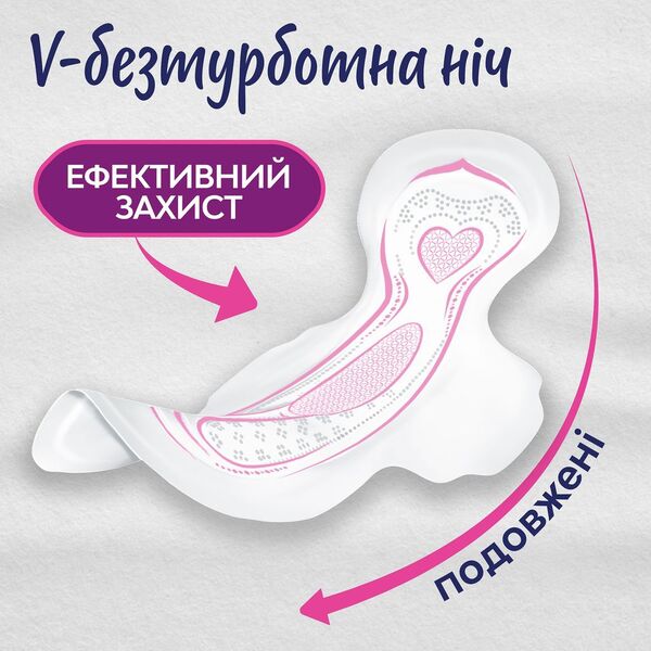 Прокладки Maxi ночная защита имеют мягкую поверхность и впитывающий слой для надежной защиты, анатомическую форму, позволяющую идеально повторять контуры женского тела, с крылышками, надежно фиксирующими прокладку на белье. Выделения каждой женщины уникальны, поэтому на свертке мы используем V-индикатор выделений, чтобы подобрать идеальную прокладку. Больше красного в индикаторе означает большую степень впитывания.