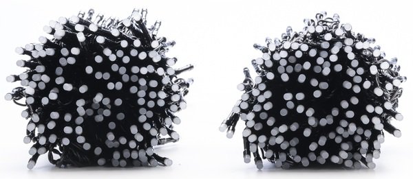 Серия Strings - одна из семейства разных типов гирлянд Twinkly, в ней LED лампочки расположены как на традиционных гирляндах, одна за одной, на расстоянии 8cм по длинной нити (strings). Наилучшим образом гирлянда Strings показывает себя при плотном обматывании объемных объектов или заполнении плоскостей, объемов, хотя годится и для акцентирования линий. Ее часто просто укладывают на снегу или траве хаотичным узором.