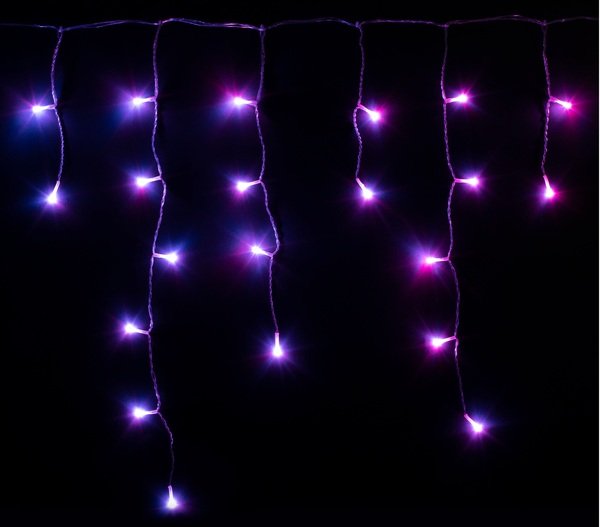 Icicle - своеобразная гирлянда, в ней LED лампочки расположены последовательно, сегментами периодически разной длины по 5 штук через каждые 10см. Это напоминает сосульки под крышей или бахрому. Сегменты периодически повторяются по схеме расположения в них ламп: 2-4-6-2-5, 2-4-6-2-5, ... и так 10 раз подряд. Кабель питания подходит между пятым и шестым сегментом, разбивая, таким образом, гирлянду на два крыла по 2,5м каждое (в каждом по 5 сегментов 2-4-6-2-5). При включении, если расположить Icicle под потолком или крышей, эффект действительно, как от сосулек, но невероятно освещенных. Наилучшим образом гирлянда Icicle подчеркивает линии, контуры на высоте, но годится и для обматывания.