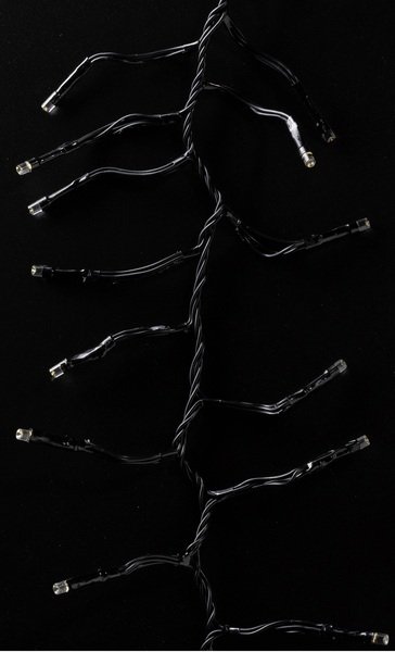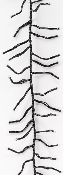 Cluster - необычная гирлянда, в ней LED лампочки расположены как иголки на сосновой ветке. LED лампы на "cосновых иголках" длиной 7см следуют одна за другой на расстоянии 1,5см и направлены во все стороны (на 360°) вокруг такой 6-ти метровой "ветки". При включении эффект впечатляющий. Наилучшим образом гирлянда Cluster подчеркивает линии, контуры. Ее в массе случаев достаточно просто уложить на поверхность прямой линией или узором.