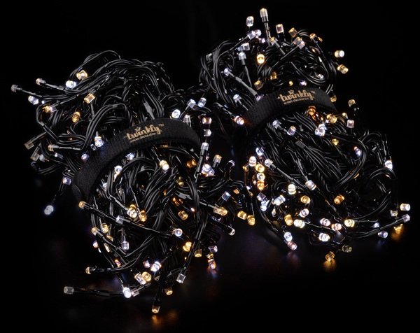 Twinkly - особо эффектные премиум гирлянды, управляемые как кнопкой на гирлянде, так и из мобильного приложения Twinkly в них каждый светодиод управляется программой отдельно ради великолепных эффектов. Мобильное приложение элегантно и легко отображают эффекты и анимацию на выбранном объекте расположения гирлянды. Twinkly предлагает набор эффектов, готовых для моментального отображения. Каждый из эффектов можно модифицировать или создать полностью свой. Голосовое управления Google Assistant и Amazon Alexa (пока лишь на англ языке) разнообразит управление гирляндой. С помощью аксессуара Twinkly Music Dongle (приобретается отдельно) световые эффекты синхронизируются с музыкой. Разные гирлянды Тwinkly могут быть легко объединены в одну синхронно светящуюся группу. Гирлянды Twinkly разработаны как для внутреннего, так и для наружного (стандарту IP44) использования.