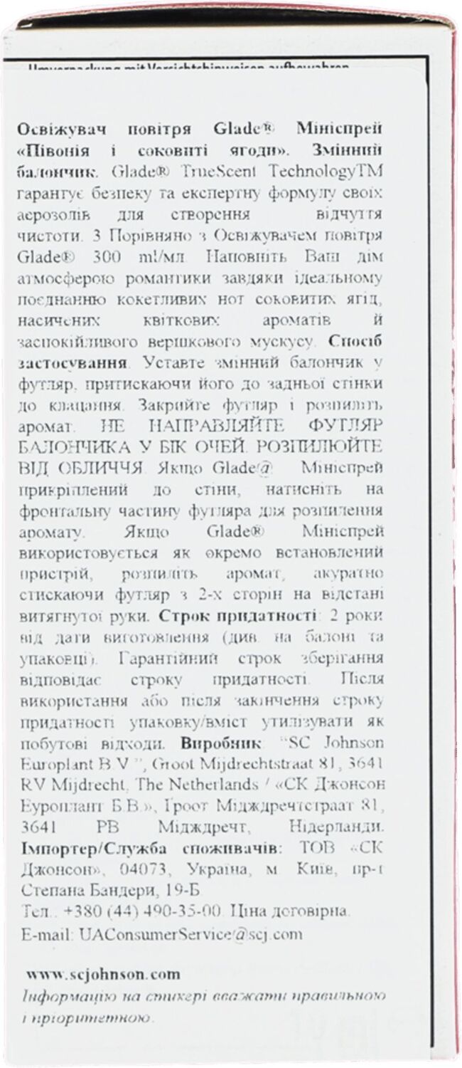- Освежитель воздуха-микроспрей Glade Пион и сочные ягоды 10мл