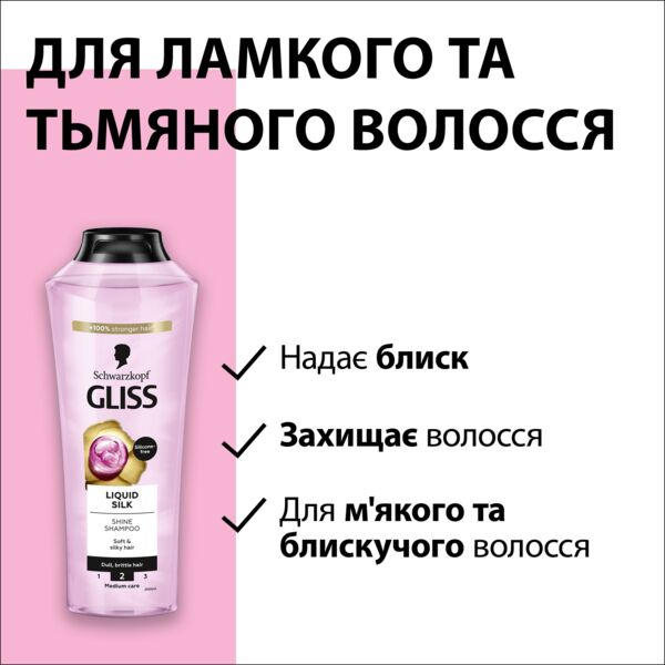 - Gliss Kur Шампунь 400мл Жидкий Шелк Gloss Для ломких и лишенных блеска волос