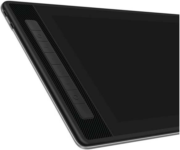 На левой стороне графического планшета установлено 8 нажимных клавиш, каждая из них может быть настроена на различные функции, такие как комбинации клавиш, левая и правая кнопки мыши, а также на переключение экрана дисплея и даже на подключение к компьютерной системе, например на блокировку экрана и выключение компьютера. Кроме того, соединения этих функций можно настроить на клавиши пера, что значительно повысит эффективность рисования.
