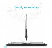 Комплектація: - Графічний планшет - Пасивне перо/стилус - Micro USB кабель - Підставка для пера (8 наконечників всередині) - Інструкція