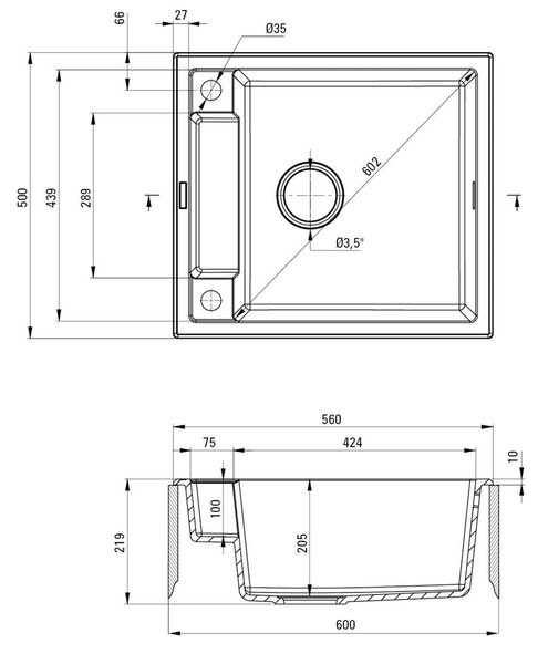 | Количество раковин | 1 основная |