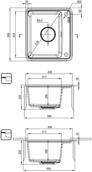 | Комплектация | Вентиль 3,5”, Крышка сливного фильтра, Перелив, Разделочная доска, Сифон |