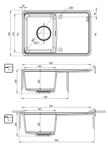 | Комплектация | Крышка сливного фильтра, Перелив, Разделочная доска, Сифон |