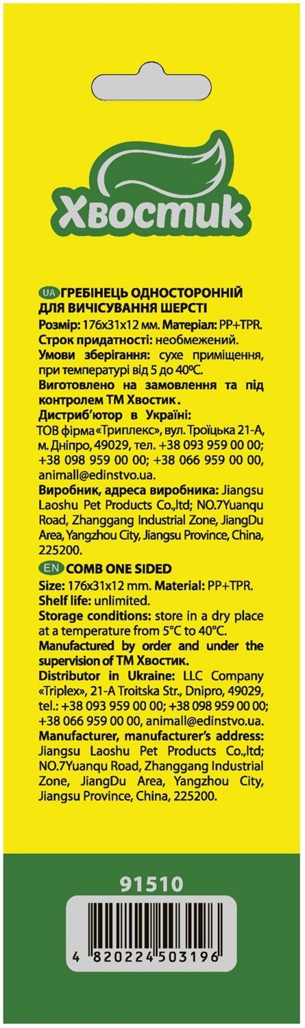 - Расческа Хвостик односторонний для вычесывания шерсти