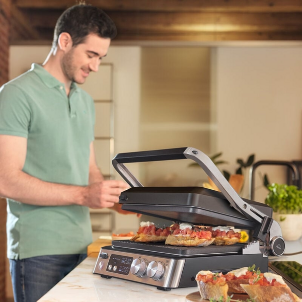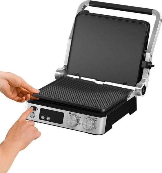 Благодаря разумному сочетанию двух разных пластин и трех гибких позиций приготовления вы можете наслаждаться неограниченной универсальностью. Наслаждайтесь идеальными результатами приготовления блюд на гриле для завтрака, обеда, ужина и закусок.