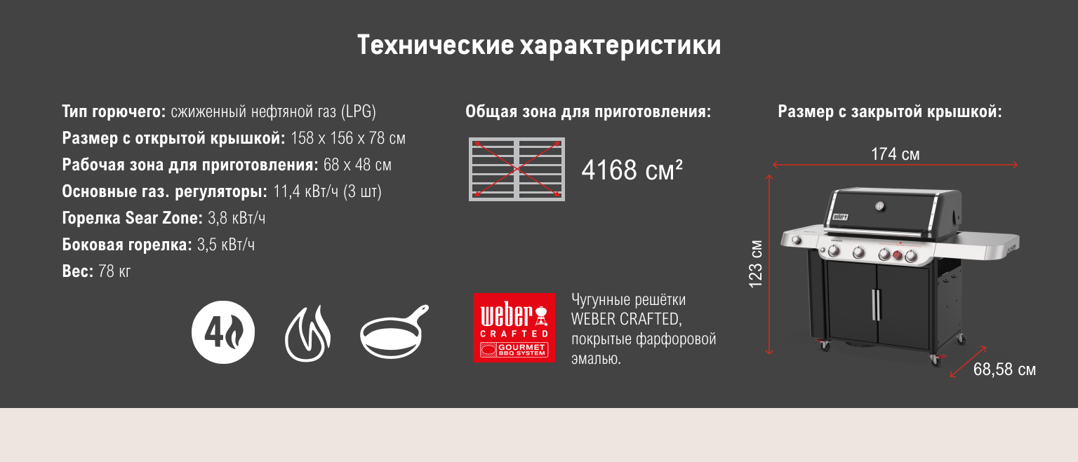 Похожие товары Гриль газовый Weber Genesis E-435, черный (36410075)