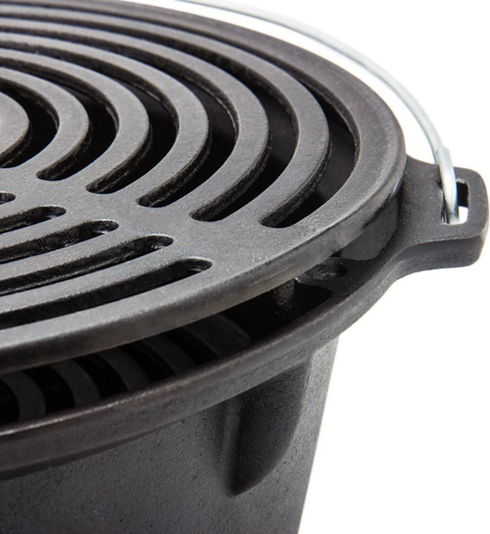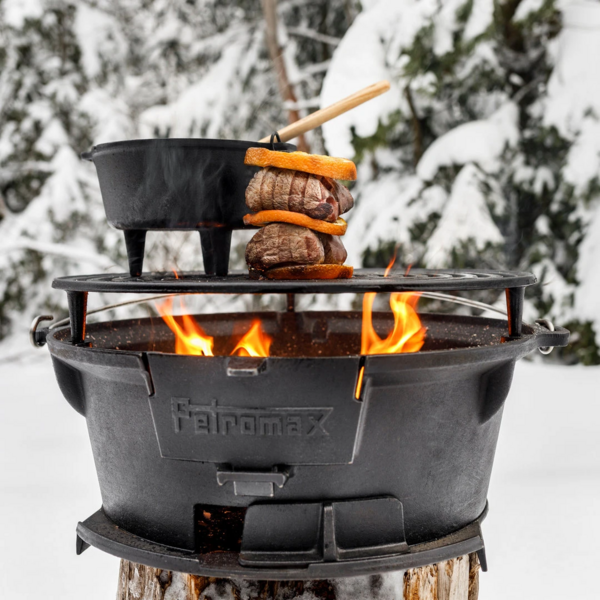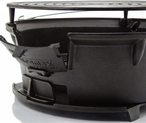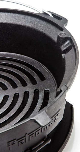 Многозадачный угольный гриль от немецкого бренда Petromax. Состоит из топки, гриль-решетки и колосниковой решетки. Все компоненты изготовлены из высококлассного чугуна.