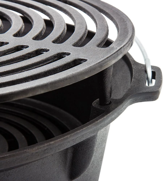 - Погружение сосуда внутрь топки (например, тушеная картошка в чугунной жаровне Petromax Dutch Oven).