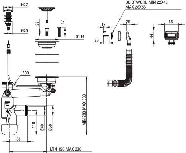 Раковина оснащена оригинальным сифоном "Space Saver". Если вас раздражают колена и трубы, занимающие все пространство в шкафу, это решение для вас. Специальный дизайн и телескопическая конструкция позволяют расположить сифон в соответствии с вашими потребностями. Это позволяет освободить в шкафу гораздо больше места, которое можно использовать для домашних заготовок или корзин для мусора. Также к сифону можно подключить стиральную или посудомоечную машину. И самое главное - сифон входит в комплект поставки.