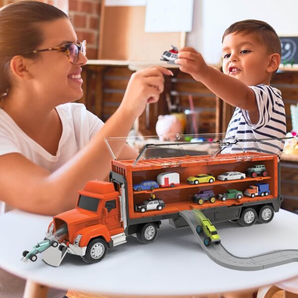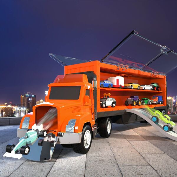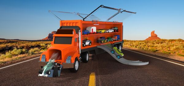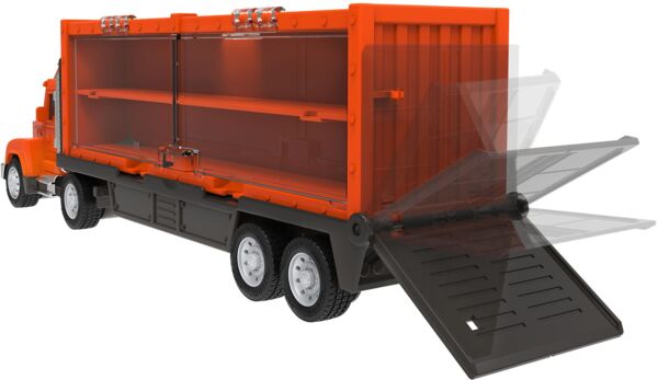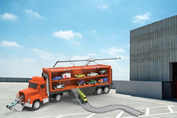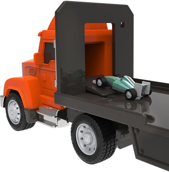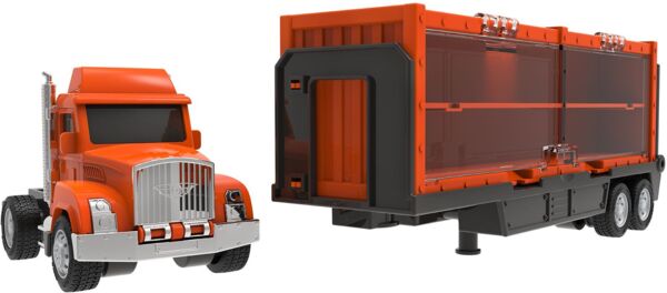 - Грузовик для перевозки игрушек со съемным прицепом и контейнером.