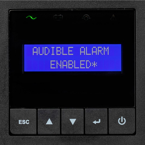 Получайте четкую информацию о состоянии ИБП и измеряемых показателях (уровень нагрузки, уровень заряда батареи, напряжение и частота на входе/выходе) с помощью нового интерфейса с жидкокристаллическим дисплеем.