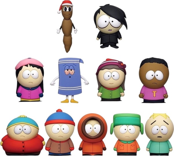 - В серии 11 главных героев из мультсериала "Южный парк", из которых 2 редких: Картмен, Стен, Кенни, Кайл, Батерс, Токен, Венди, Рушник, Хайди, Мистер Хэнки (редкий) и Ребенок-гот (редкий);