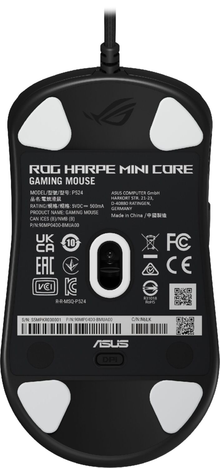 ROG Harpe Mini Core, созданная при участии киберспортсменов, повторяет форму модели ROG Harpe Ace Mini для максимального комфорта и точного контроля, особенно при хватах «когтем» и пальцами. Легкий корпус (52 г) позволяет легко и точно управлять мышью как в соревновательных баталиях, так и во время расслабленных сессий.