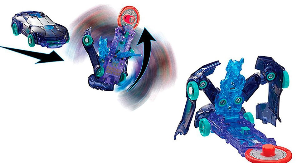- Каждый скричер трансформируется в животное с супер силой, нужно только запустить машинку направляя ее на магнитный диск или наоборот запустить диск в машинку, при соприкосновении с которым она сделает кувырок в воздухе и превратится в зверя.