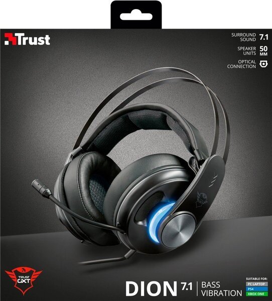 С виртуальным 7.1-канальным объемным звуком вы ощутите игру на новом уровне. Мощные 50-миллиметровые активные басовые вибрационные динамики создают глубокий, интенсивный атмосферный звук. В сочетании с исключительным качеством звука гарнитура Trust Dion выведет ваш игровой опыт на новый уровень.