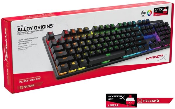 - Игровая клавиатура HyperX Alloy Origins Red USB RGB RU, Black (4P4F6AX)