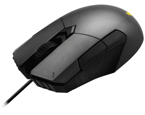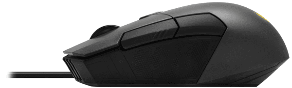 TUF Gaming M5 имеет шесть программируемых кнопок с четким тактильным откликом. В устройстве применена конструкция корпуса с отделенными от него кнопками, что позволило снизить усилие и ход, необходимые для регистрации нажатия, благодаря этому появилась возможность нажимать кнопки быстрее и с более четким тактильным откликом. Переключатель разрешения DPI с индикатором позволяет регулировать чувствительность мыши «на лету», а две боковые кнопки на левой стороне корпуса и колесико прокрутки с функцией нажатия дают игроку дополнительные возможности для управления.