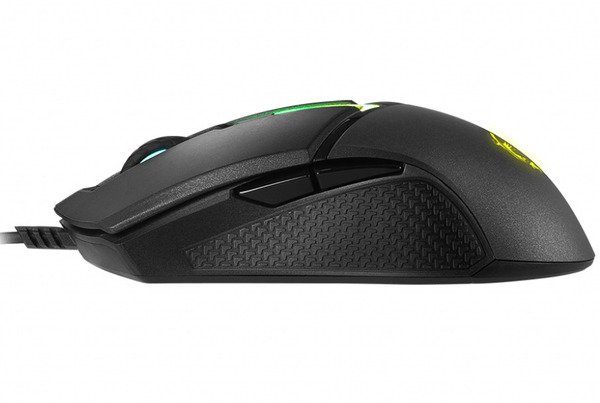 Чтобы мышка не выскальзывала из пальцев, на ее корпусе имеются рифленые боковины "драконья чешуя". Дополнительные кнопки обладают удобной для нажатия полигональной формой и легким ходом.