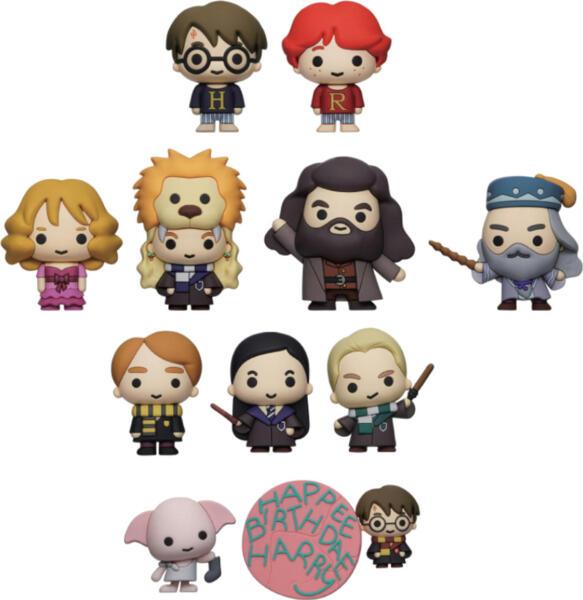 - В коллекции представлено 11 фигурок, среди которых одна — редкая: Гарри Поттер, Рон Уизли, Гермиона Грейнджер, Луна Лавгуд, Рубеус Хэгрид, Альбус Дамблдор, Седрик Диггори, Чо Чанг, Драко Малфой, Доби с носком и Тортик для Гарри Поттера от Хагрида (редкий).