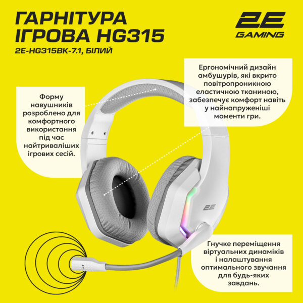 Игровая гарнитура 2E Gaming HG315 RGB USB 7.1 White