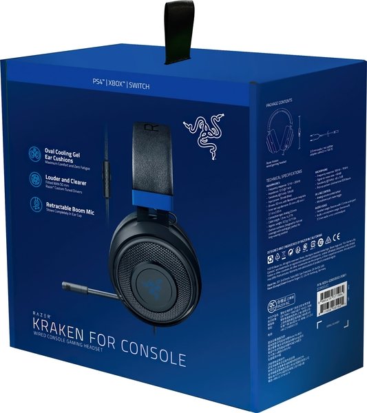 Razer Kraken for Console совместимы с ПК, Mac, Xbox One*, PS4, Nintendo Switch и мобильными устройствами с 3,5-мм аудио разъемом.