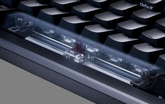Механизм клавиши пробела имеет дополнительную смазку и специальную конструкцию для улучшения акустических характеристик и ощущения нажатия.