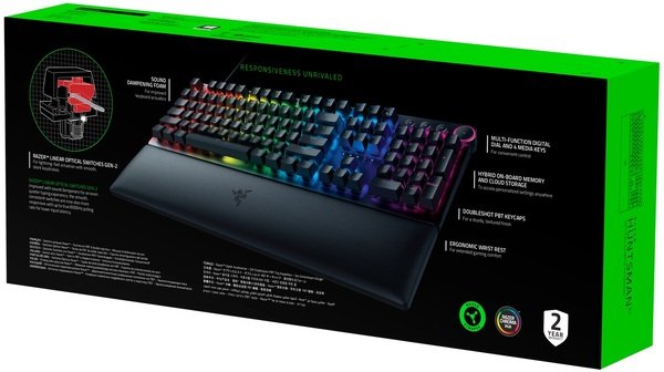 Если абсолютное преимущество больше вашей скорости, вооружитесь непревзойденной отзывчивостью, не имеющей себе равных. Встречайте Razer Huntsman V2 — оптическую игровую клавиатуру с практически нулевой задержкой ввода и полностью оснащенную другими нашими высококлассными функциями для полноценной производительности.