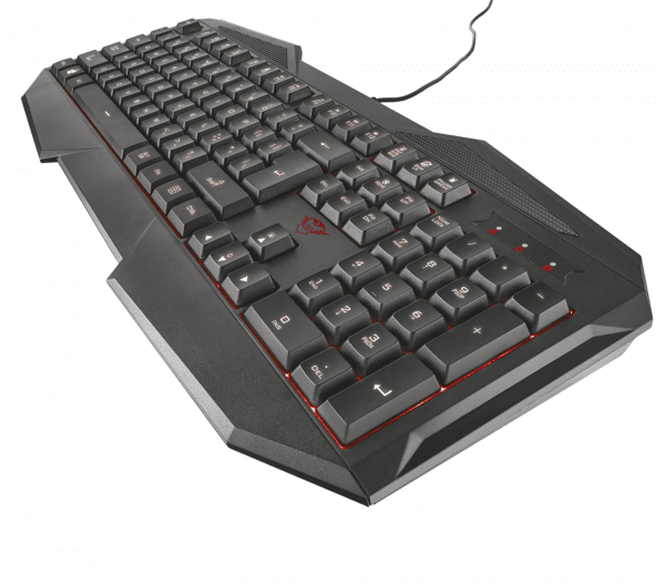 TRUST GXT 830 - это полноразмерная игровая клавиатура со светодиодной подсветкой и 12 клавишами для управления медиафункциями