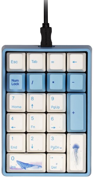 Отдельный цифровой блок в дизайне "Sea Melody". Толстые и качественные PBT-кейкапы, смазанные на заводе стабилизаторы. Отличное дополнение к вашему ноутбуку, если приходится много работать с цифрами и таблицами. Многие пользователи оценили удобство расположения мышки между нампадом и клавиатурой.