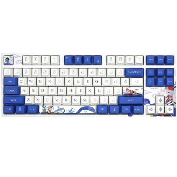 Колпачки изготавливаются из прочного пластика PBT, что гарантирует надежность и долговечность. Для гравировки символов на боках применяют технологию компьютерного печати dye-sublimation. Печатать на клавиатуре возможна благодаря текстурированнонго верха клавиш.