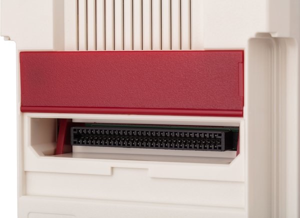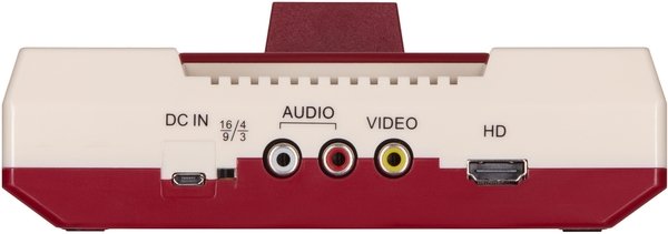 Корпус классической формы Famicom имеет узнаваемые элементы - отделение для хранения джойстиков, рычаг для легкого извлечения игровых картриджей и крышку, которая закрывает отделение с картриджами, что предотвращает попадание пыли или крошек внутрь.
